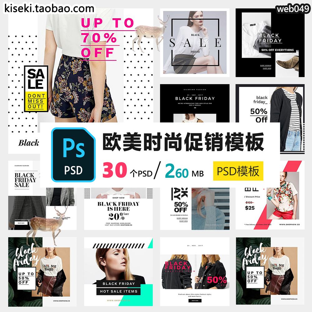 欧美英文时尚流行淘宝女装新品促销折扣微海报banners模板PSD素材